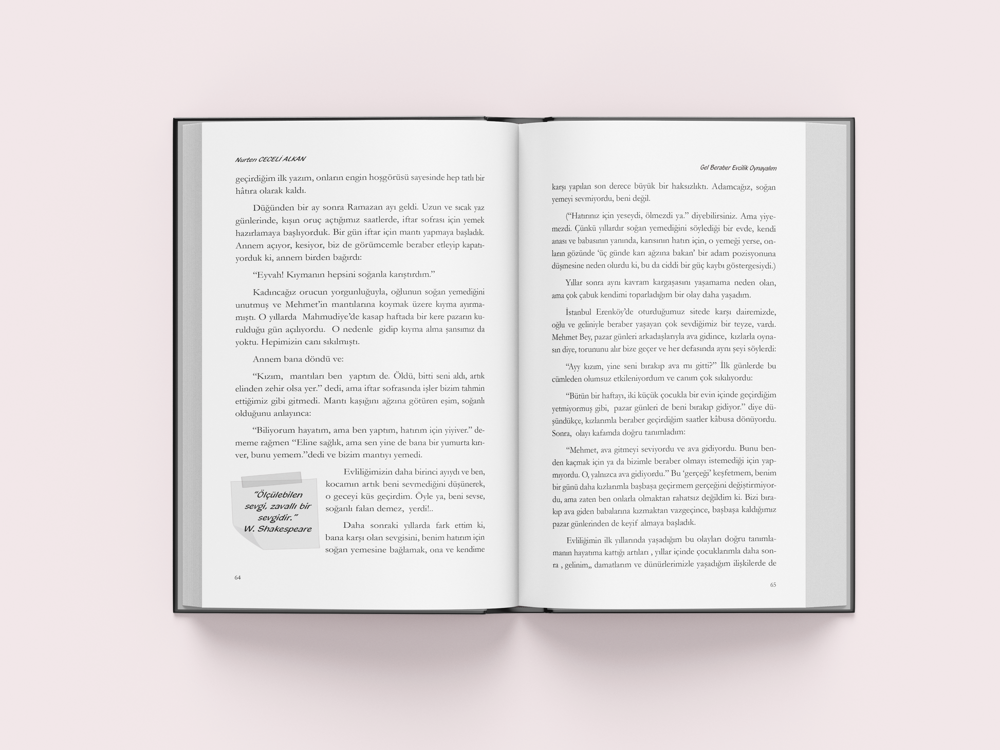 Bu kitap kırk yıldır "evcilik oyunu" keyfinde evlilik yaşama becerisi göstermiş bir eğitimci tarafından, demir leblebiyi çıtır leblebiye dönüştürmek, ateşten gömleği ise yazın serinleten, kışın ısıtan kıvamda tutabilmek için geliştirilmesi gereken becerileri anlatmak amacı ile kaleme aldı.