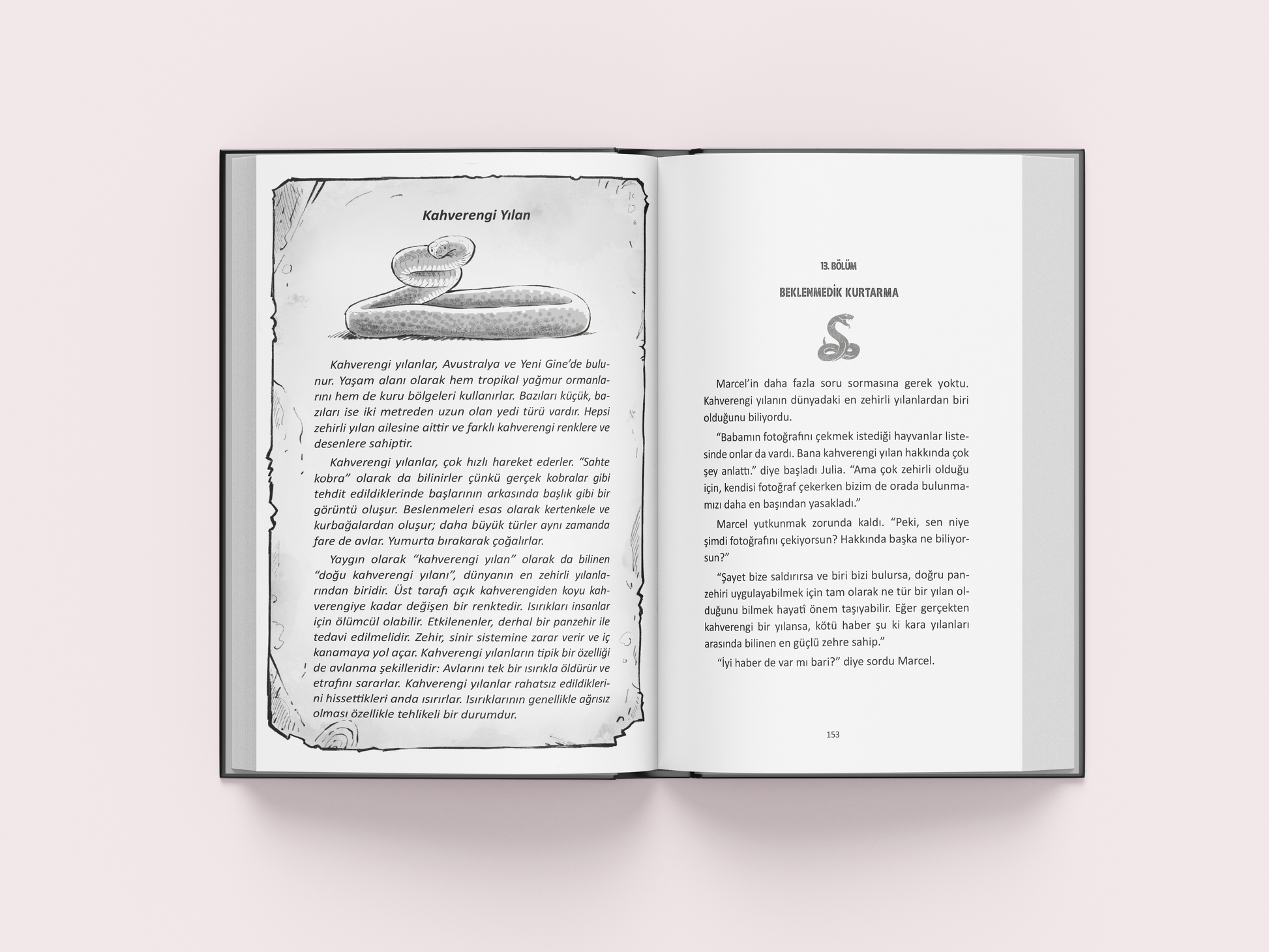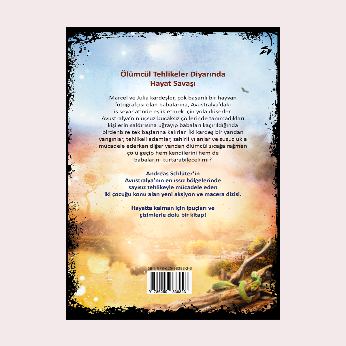 Marcel ve Julia kardeşler çok başarılı bir hayvan fotoğrafçısı olan babalarına, Avustralya'daki iş seyahatlerinde aile olmak için yola düşerler. Avustralya'nın uçsuz bucaksız çöllerinde tanıdıkları kişilerin saldırılarına uğrayıp babaları kaçırıldığında kendiliğinden bire tek başlarlar. İki kardeş bir yandan suçlular, tehlikeli adamlar, yetişmiş yılanlar ve susuzlukla mücadele ederken diğer bölgede ele geçirilmiş sıcaağa rağmen köylüler hem vardı hem de babalarını kurtarabilecek mi? Andreas Schlüter'in Avustralya'nın en ıssız bölgelerinde sayısız tehlikeyle mücadele eden iki çocuğu konu alan yeni aksiyon ve macera dizisi.. Zor hizmet koşulları hayatta kalmak için talimatlar ve çizimlerle dolu bir kitap!