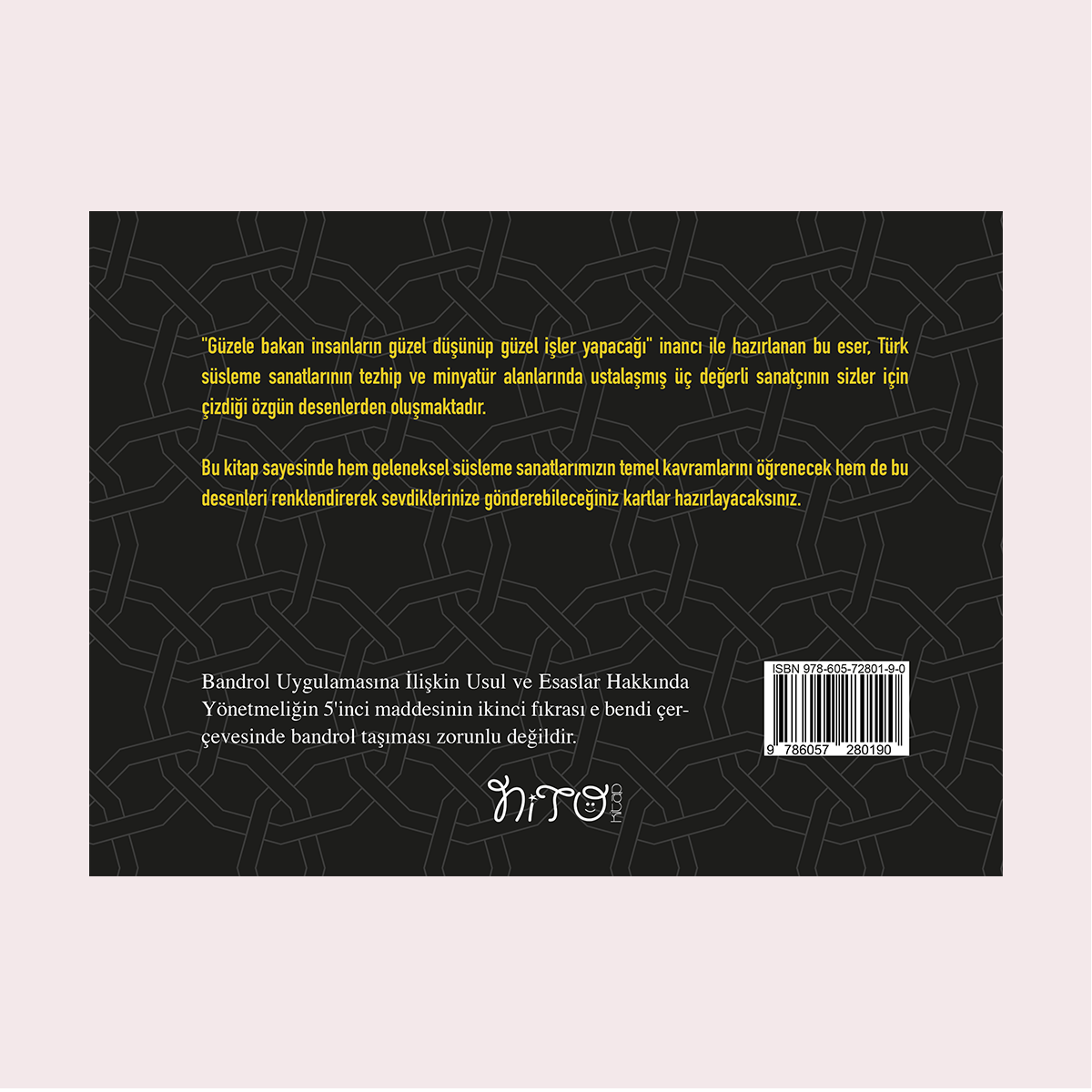 "Güzele bakan insanların güzel düşünüp güzel işler yapacağı" inancı ile hazırlanan bu kitapta Türk süsleme sanatlarından çini, maket ve tezhipte kullanılan motiflerden bazılarıyla tanışacaksınız. Aslında biraz dikkatli baktığınızda bazılarına zaten bildiğinizi fark edebilirsiniz: Camilerin çinilerinde, Kur'an sayfalarında, evdeki halılarda hep bu desenler var. Çok değerli tezhip ve yaratıcı sanatçı olan çizerlerimizin sizler için tasarladıkları her deseni bir kart olarak hazırlandık. Gönlünüzce boyayıp kesebilir; Bir şeyleri saklamazsanız sevdiklerinize hediye edebilirsiniz.